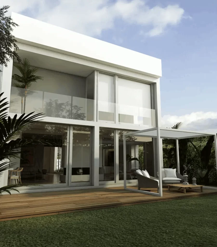 Esta residencia de doble altura redefine la vida moderna con su diseño de líneas simples y elegantes. La contrafachada, completamente abierta al jardín, permite que la luz natural inunde cada rincón, mientras las puertas ventana de acceso directo borran los límites entre el interior y el exterior.